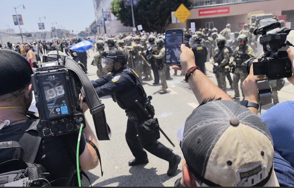 洛杉矶的抗议始于上周末,当时有人员在家得宝(Home Depot)等地被怀疑非法居留而遭到突袭逮捕。此后,尽管加州州长纽森(Gavin Newsom)表示反对,特朗普仍破天荒地部署国民警卫队,进一步激化了局势。周四,加州联邦参议员帕迪利亚(Alex Padilla)在试图在新闻发布会上当面质问国土安全部长诺姆(Kristi Noem)时被制服在地并戴上手铐,情绪再次高涨。