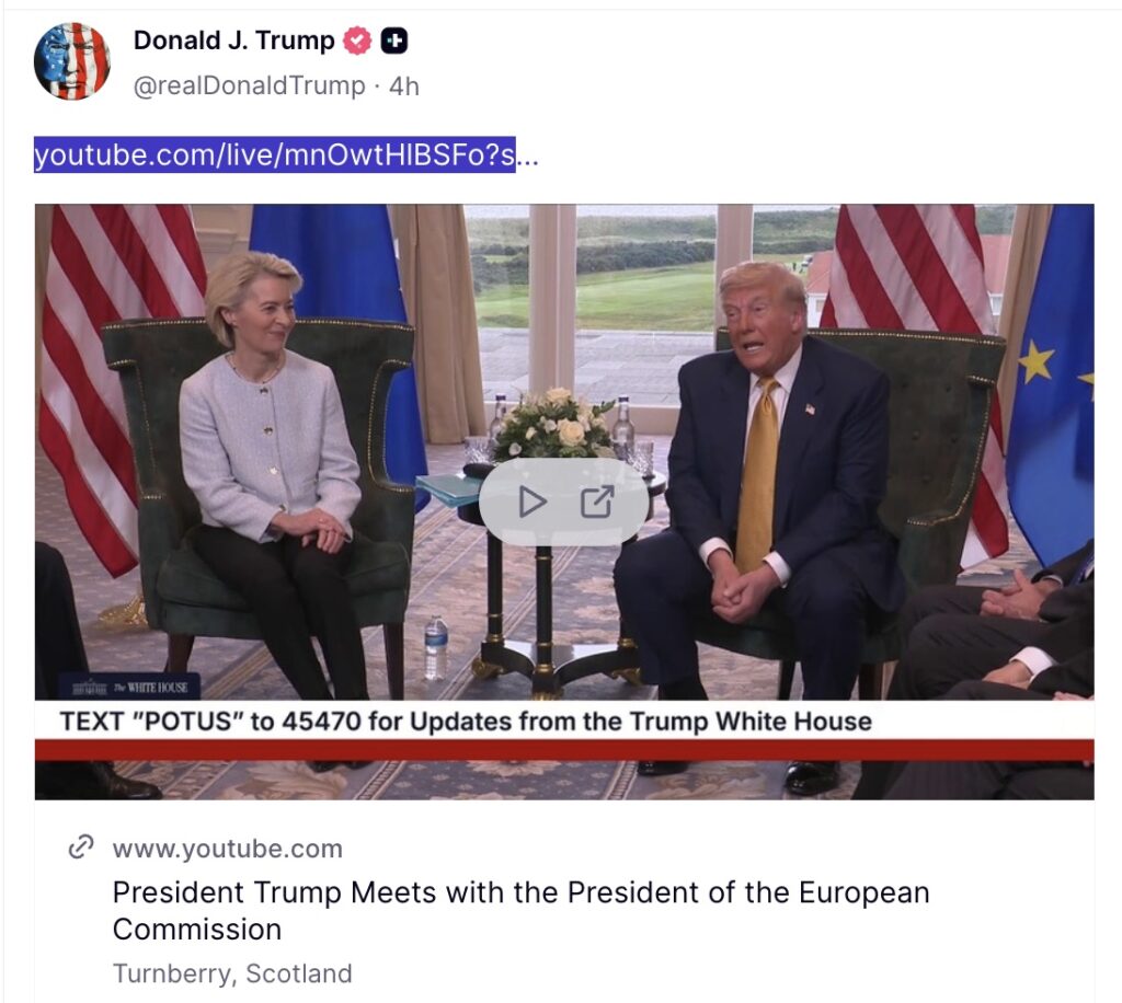 美国总统特朗普与欧盟委员会主席冯德莱恩(Ursula von der Leyen)周日在特朗普位于苏格兰的坦伯里高尔夫球场(Trump Turnberry)共同宣布了贸易协议。