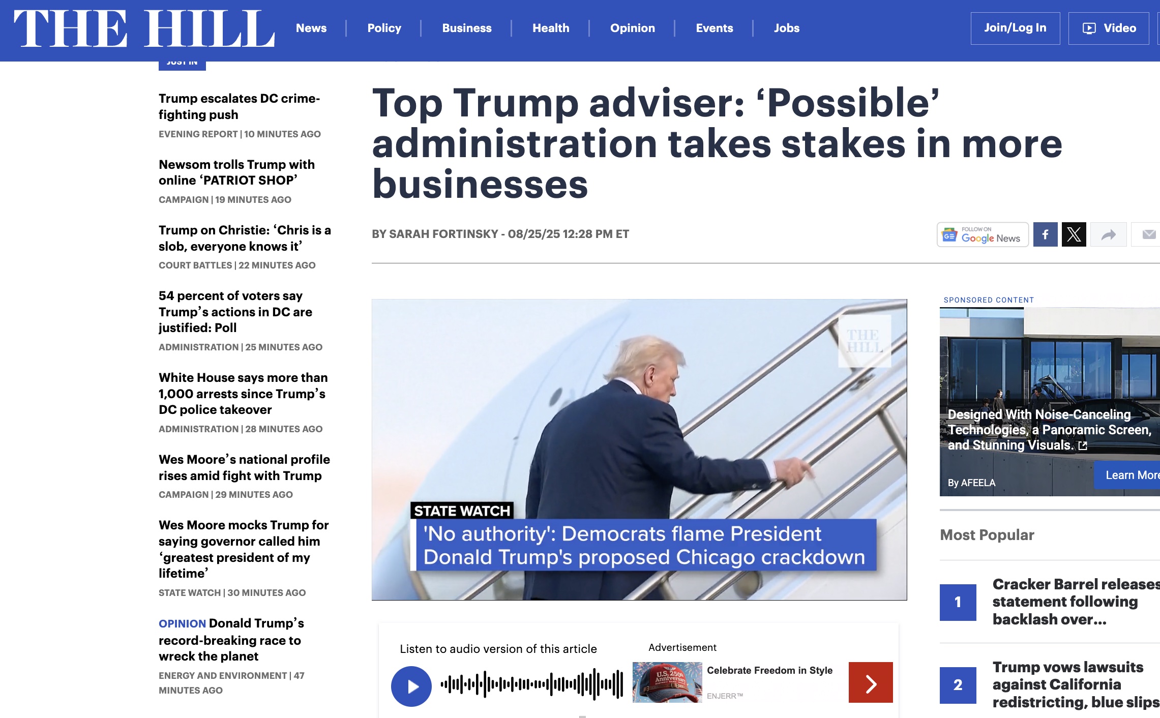 特朗普周一同样表示,可能会达成更多协议。”特朗普说,还会有其他的情况,或者如果有机会再做一次,他会这样做的。然后确实会有愚蠢的人说,‘哦,这太可惜了,’“这并不可耻。这就是商业。”