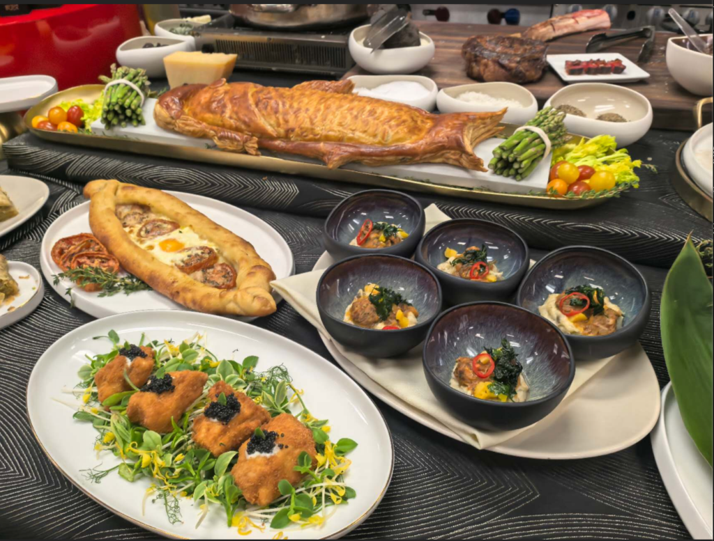 主厨帕克称,去年的上海之旅,给了他需要设计菜单的灵感,今年新加入炙烤活对虾,配四川风味的蘸酱、加入花椒的川味牛肋排等菜色, 还设立寿司台和居酒屋,、土耳其的皮德饼(Pide)。另据帕克介绍,今年还将配有5名主厨,为当晚的嘉宾现场烹制美食。
